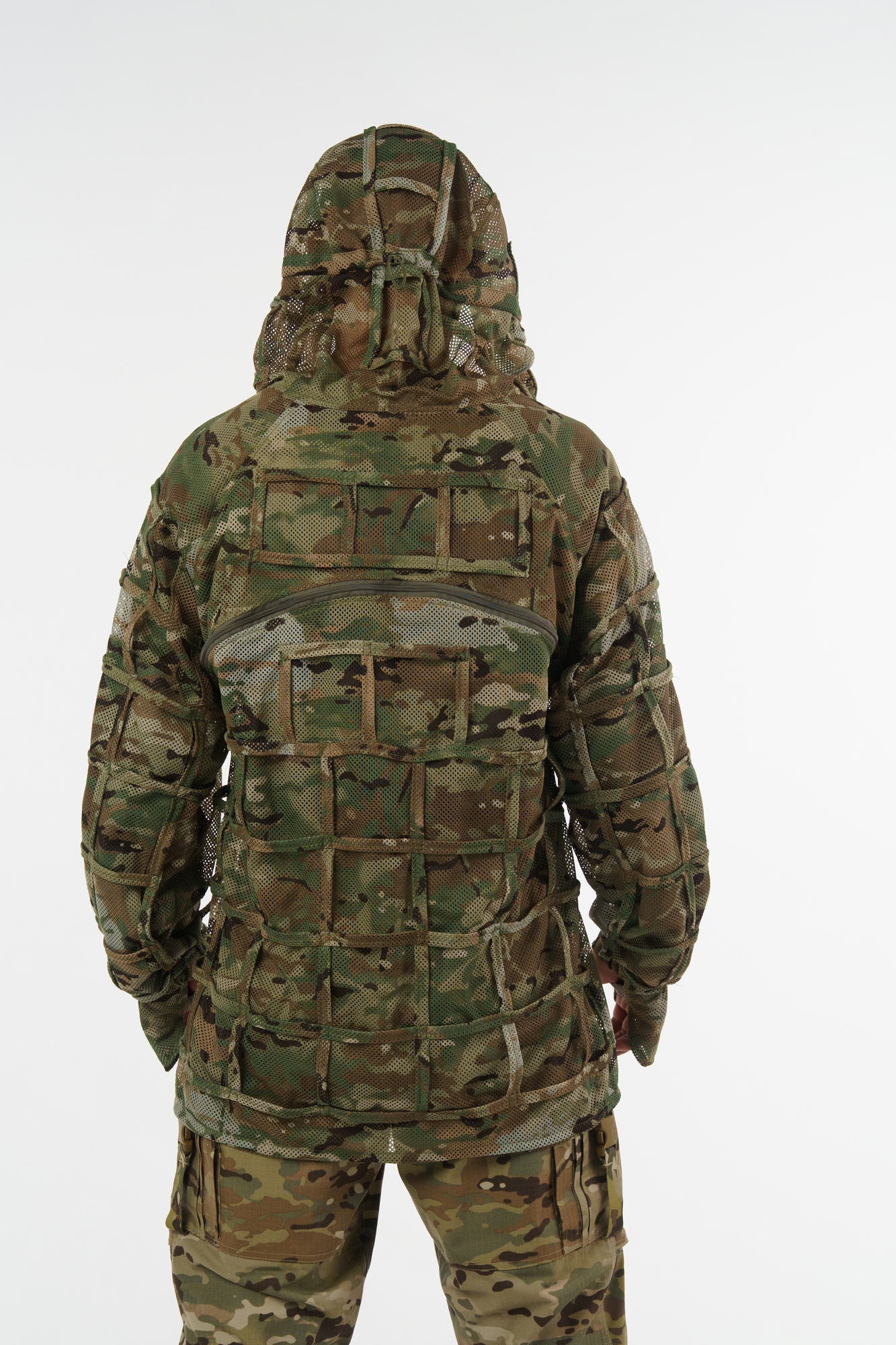 – Integrated MOLLE system for attaching natural camouflage elements